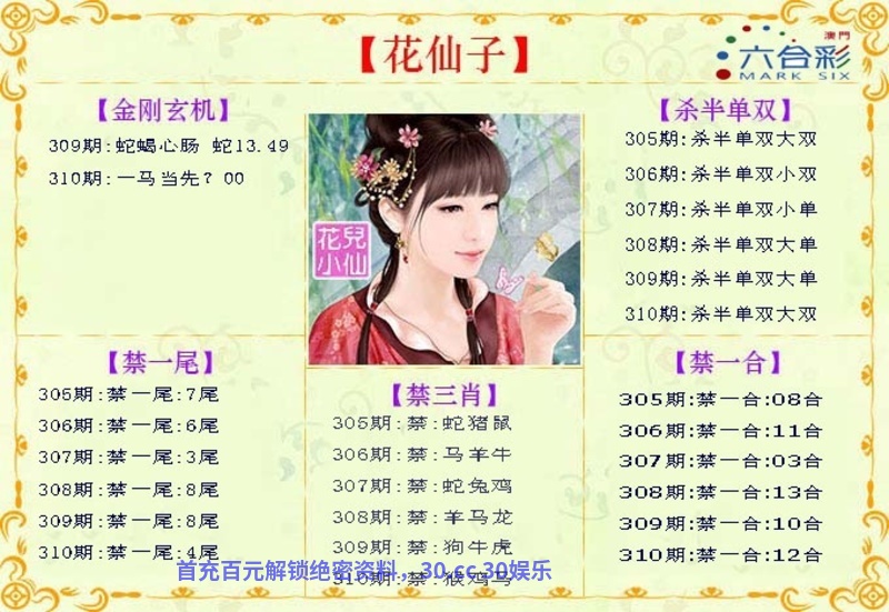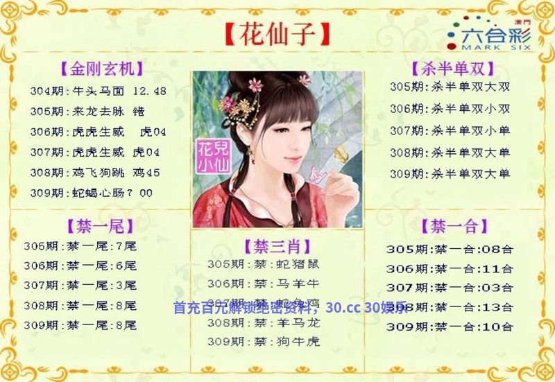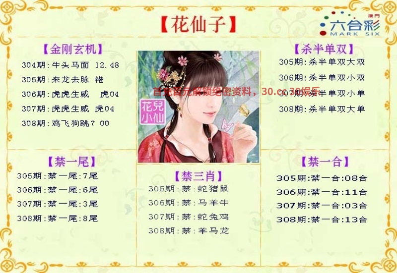 【花仙子解传真】305期:今期生肖二六开,二四出门七相送。双码红蓝看即买,得意三一又会头。申金长生在何方,家中有宝一定发。马中赤兔人最爱,顺手牵羊开好码